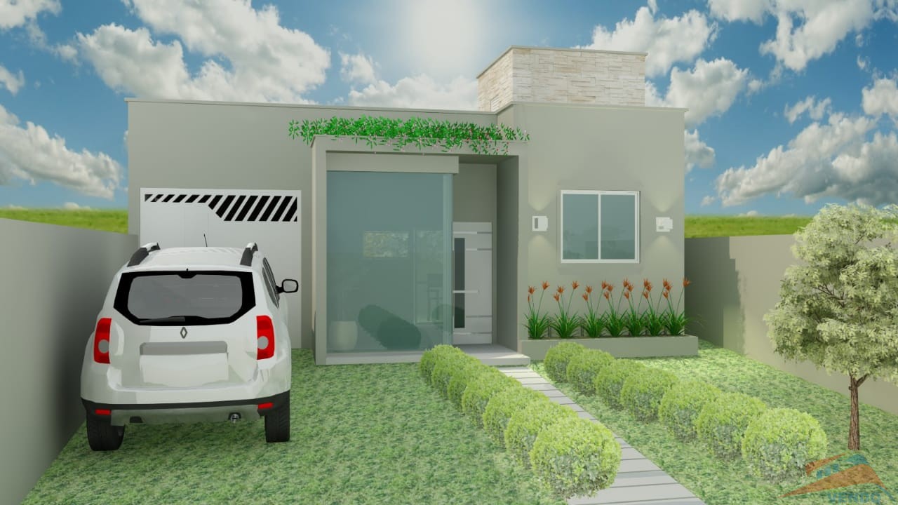 Distribuição: 01 suíte, 02 dormitórios, banheiro social, salas estar e cozinha integrado, garagem.
