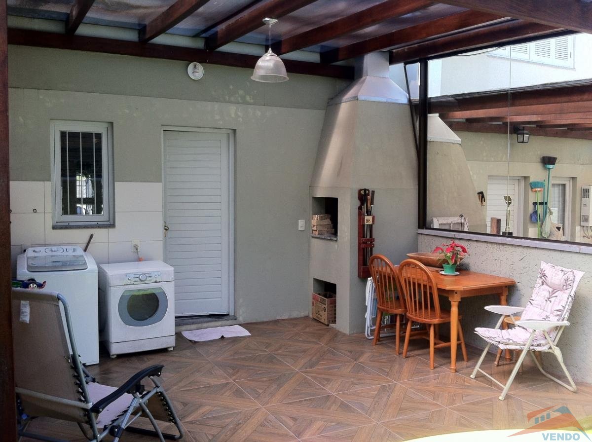 02 dormitórios, banheiro social, lavabo, sala de estar/jantar e cozinha integradas, área de serviço, churrasqueira,com pergolados nos fundos com vidro e na frente para carro.Espera para aquecimento a gás, portão eletrônico, piso porcelanato e forro com detalhes em gesso.